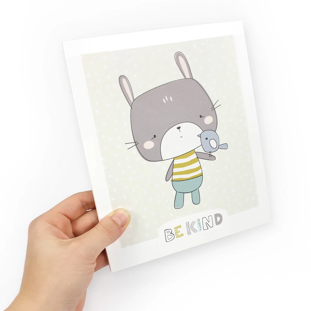 - 1x Kunststoffplatte (BxHxT: 17 x 20 x 0,5 cm) mit Illustration „Hase – be kind“