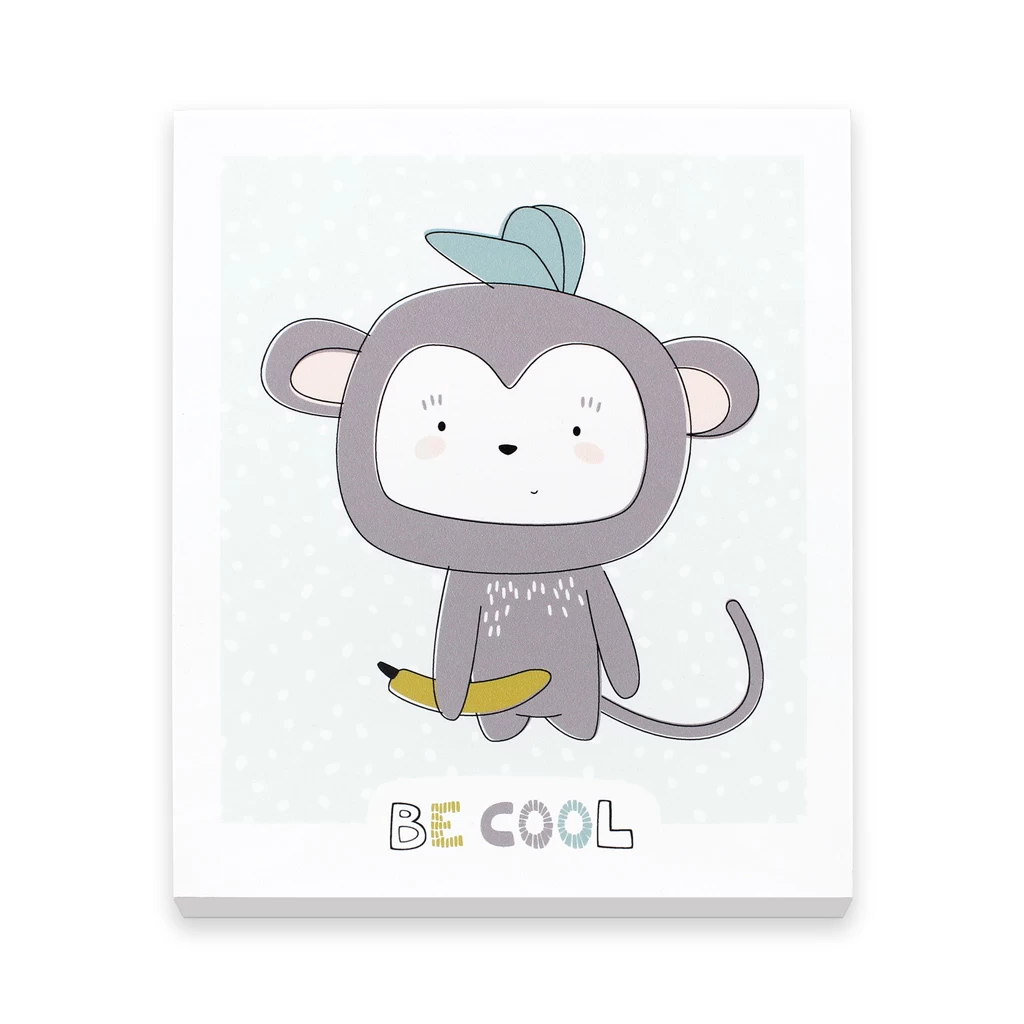 - 1x Kunststoffplatte (BxHxT: 17 x 20 x 0,5 cm) mit Illustration „Affe – be cool“