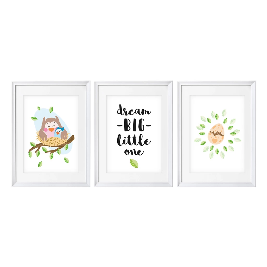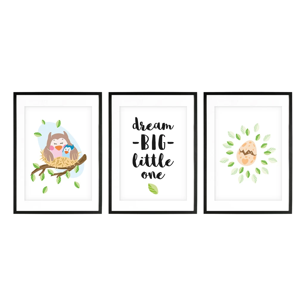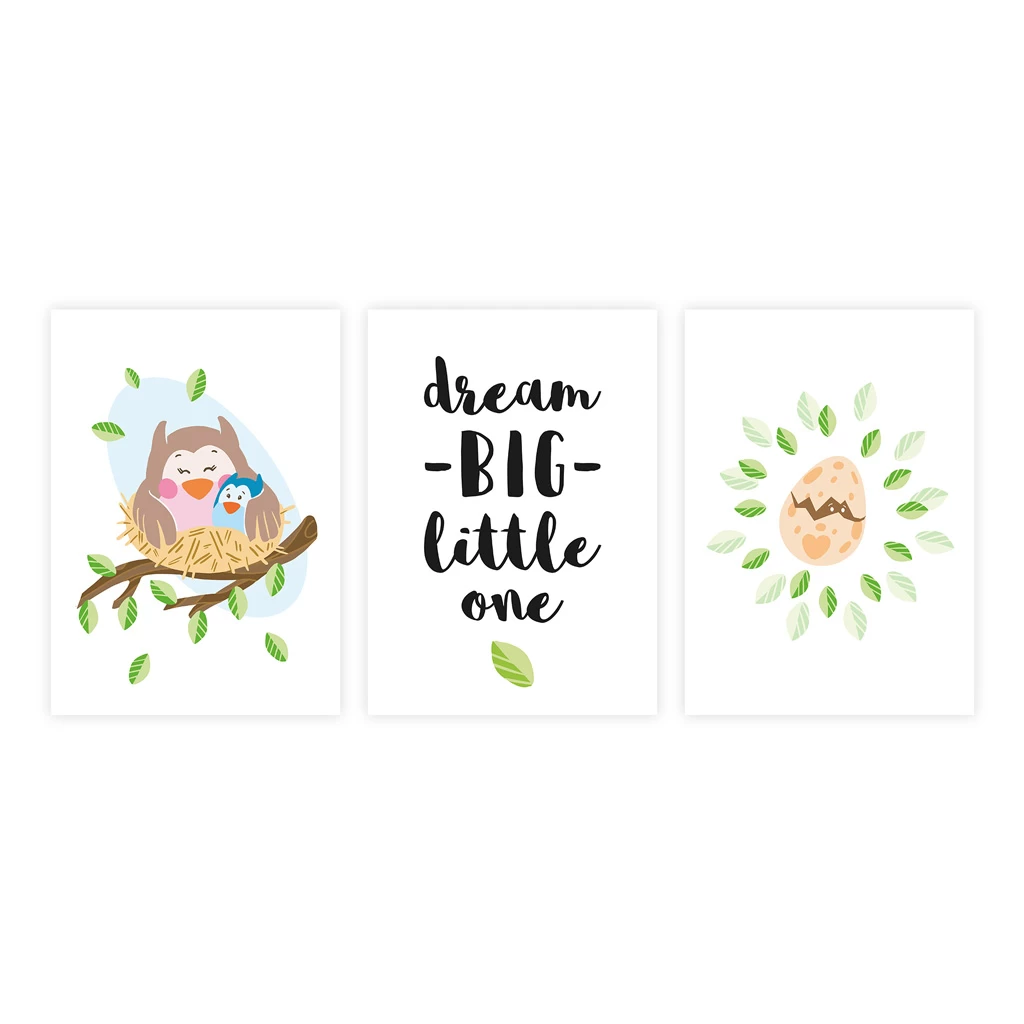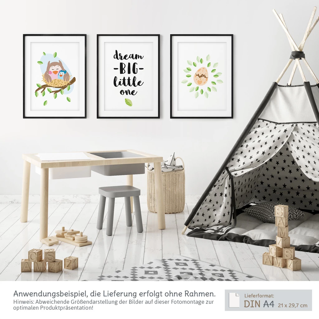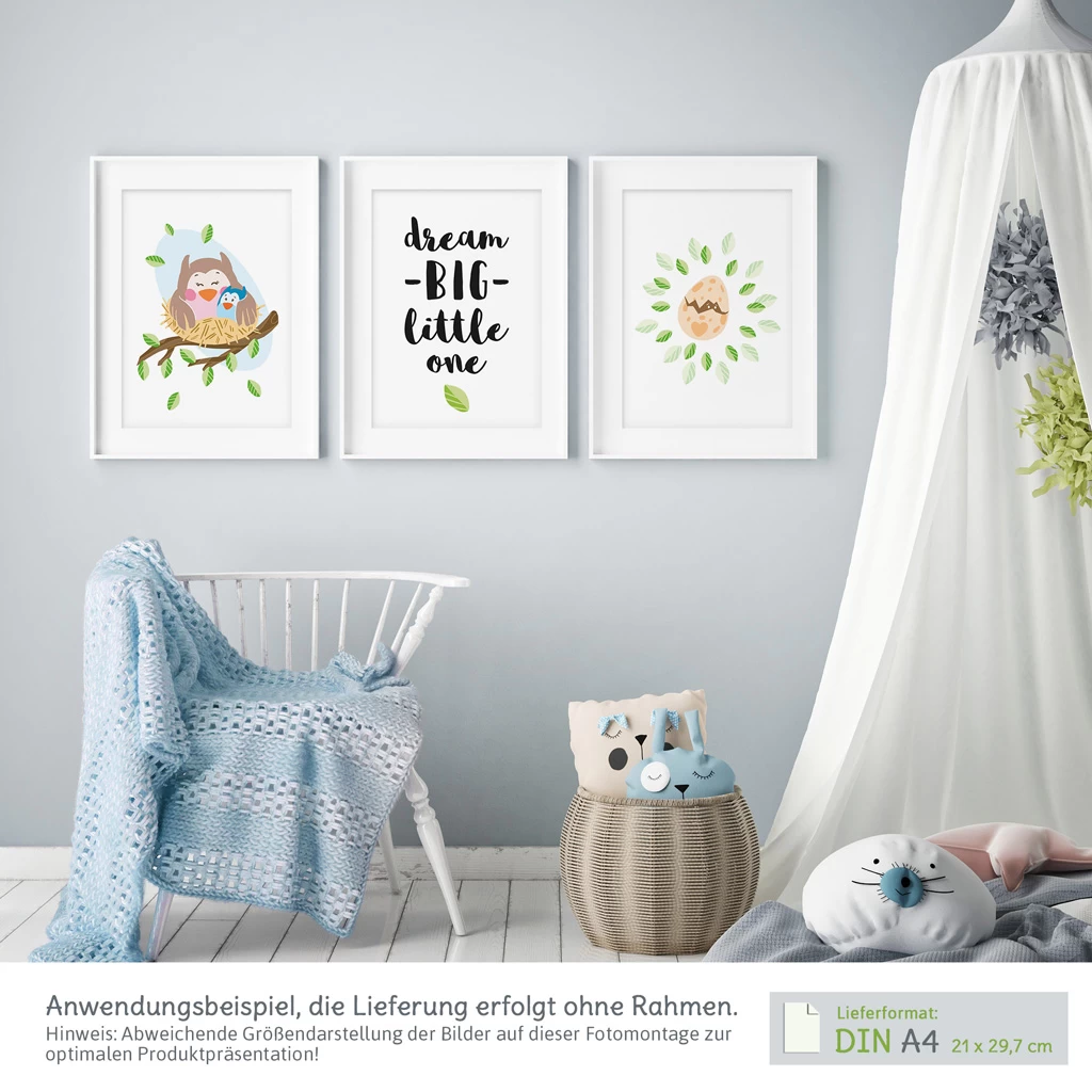 Lieferumfang vom 3er-Set „Eulen“ Bilder Babyzimmer:
