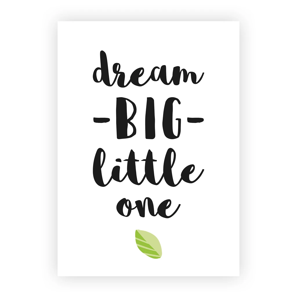 - 1x DIN A4 (21 x 29,7 cm) Kinderzimmerposter / Kunstdruck Spruch „Dream big little one“ ohne Rahmen