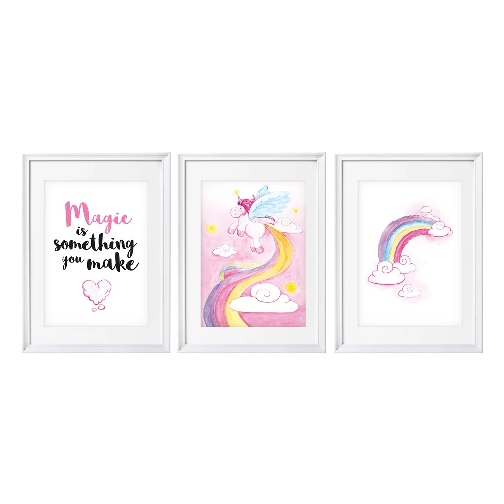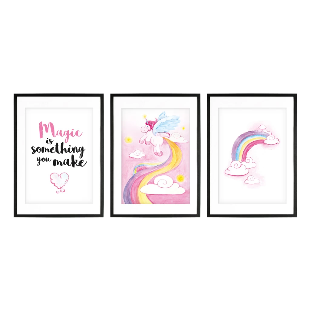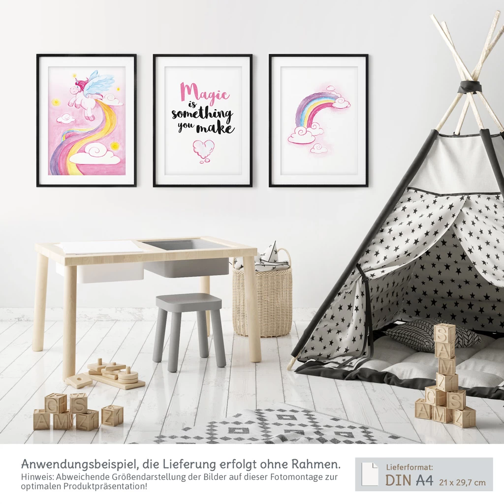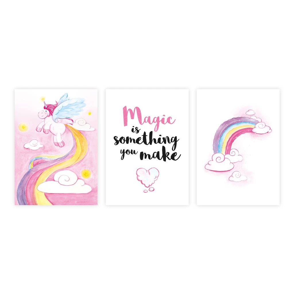 Lieferumfang vom Poster-Set „Einhorn Bilder Kinderzimmer Mädchen“: