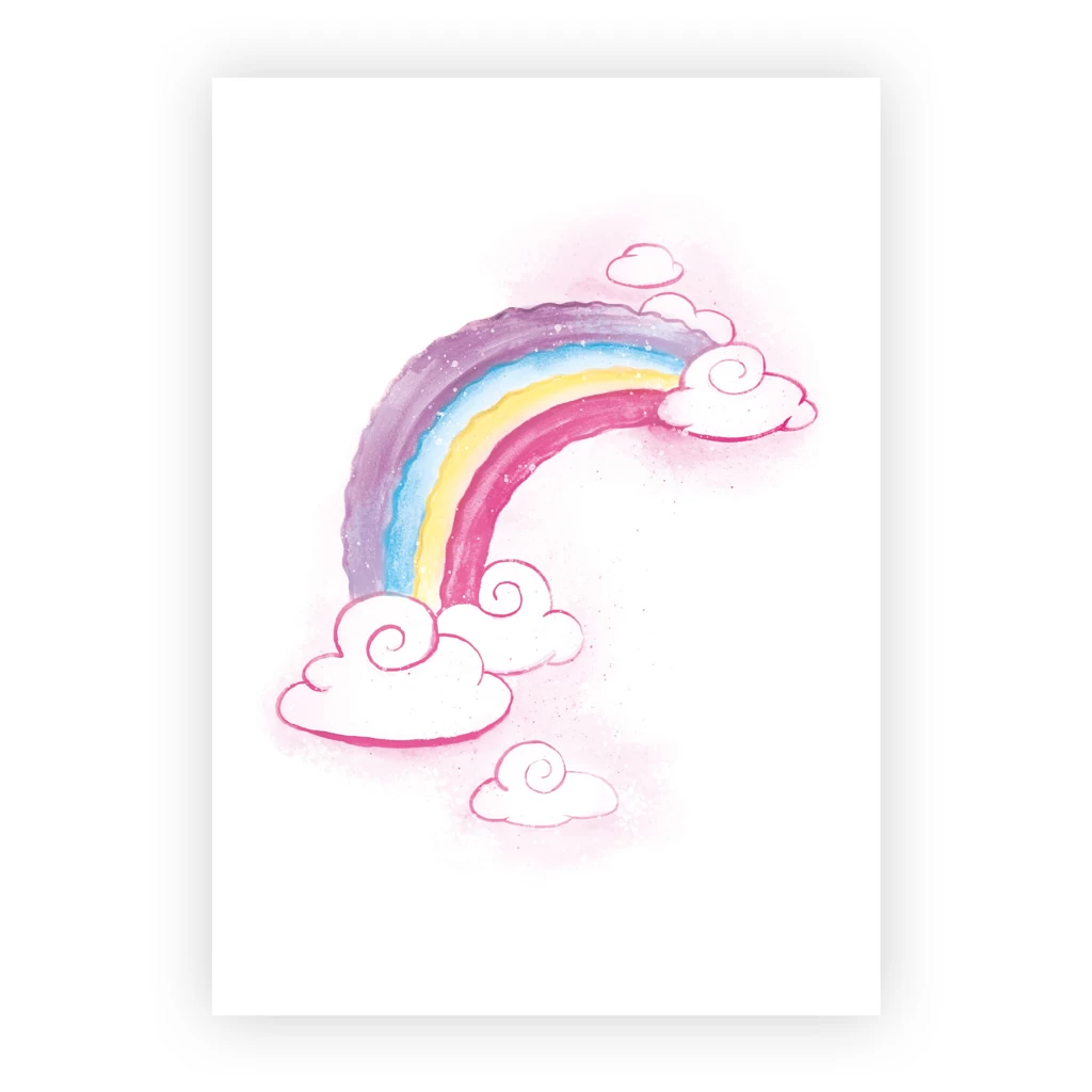 - 1x DIN A4 (21 x 29,7 cm) Kinderzimmerposter / Kunstdruck Aquarell „Regenbogen“ ohne Rahmen