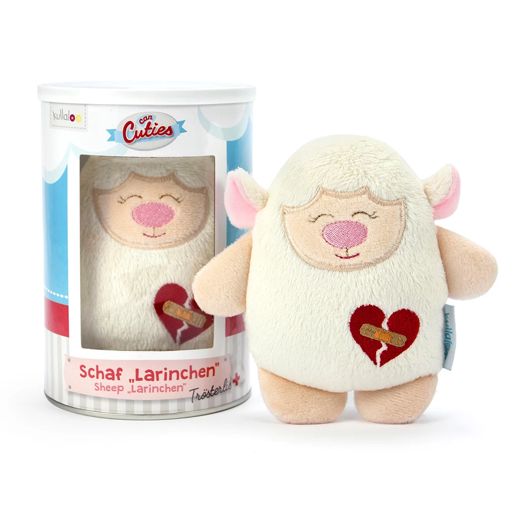 Kuscheltier Schaf „Larinchen“ aus unserer CanCutie Serie „Trösterlis“ ist ca 15cm * 10cm groß und kommt verpackt in einer zuckersüßen Dose mit Sichtfenster.