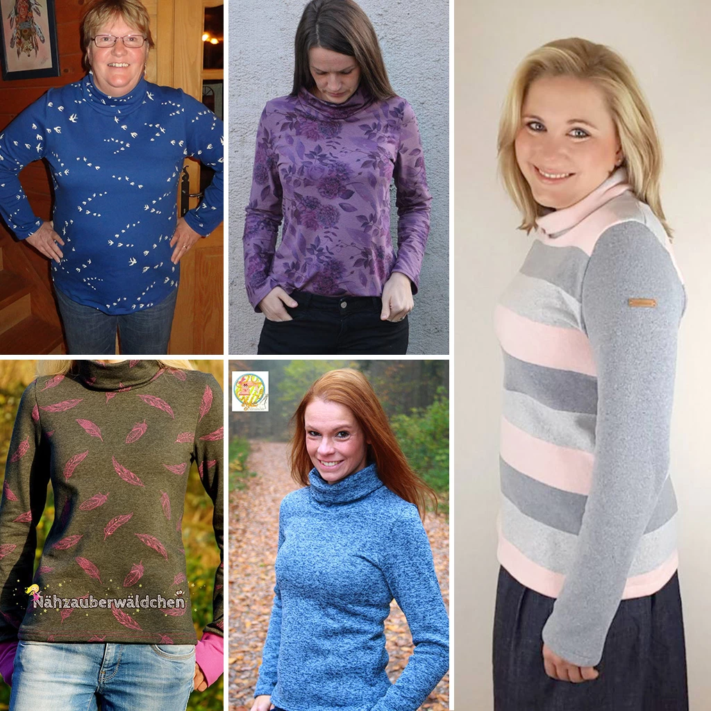 Hier findest du nun noch eine ganze Reihe an Inspirationen zu Rollkragenpullover „RENATE“. Das Modell wurden in einem Probenähen auf Herz & Nieren geprüft und es sind viele wunderbare Einzelstücke entstanden. Viel Spaß beim Stöbern 🙂