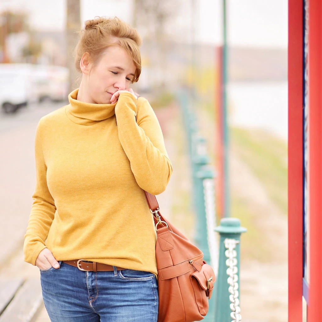 Die Damenversion des Rollkragenpullovers ist besonders in den kleineren Größen tailliert geschnitten. Der Schnitt eignet sich übrigens klasse zum Aufpeppen mit Plottermotiven oder sonstigen Bügelbildern oder zum Besticken.