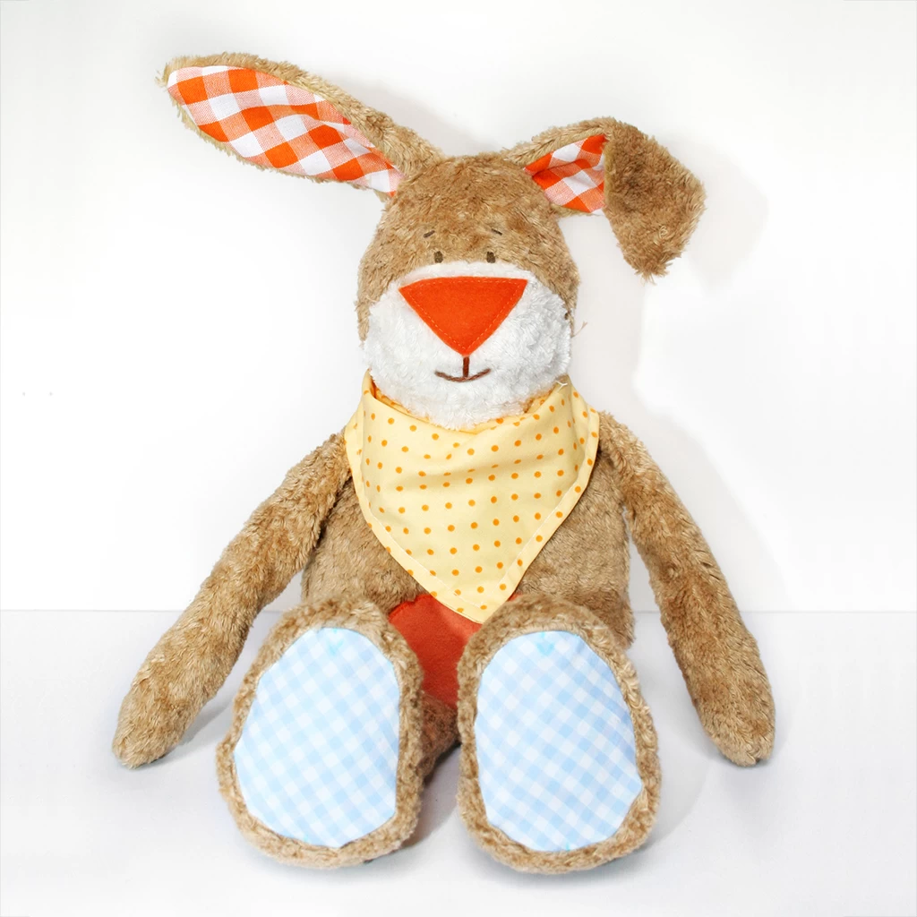 Mit diesem Doppel-Schnittmuster Hase „KULIO“ mit ausführlicher Nähanleitung als eBook kannst du unseren beliebten Hasen „KULIO“ als Kuscheltier und als süßes Schmusetuch selbst nähen. Nach Kauf und Bezahlung kannst du die Anleitung als PDF downloaden und ausdrucken.