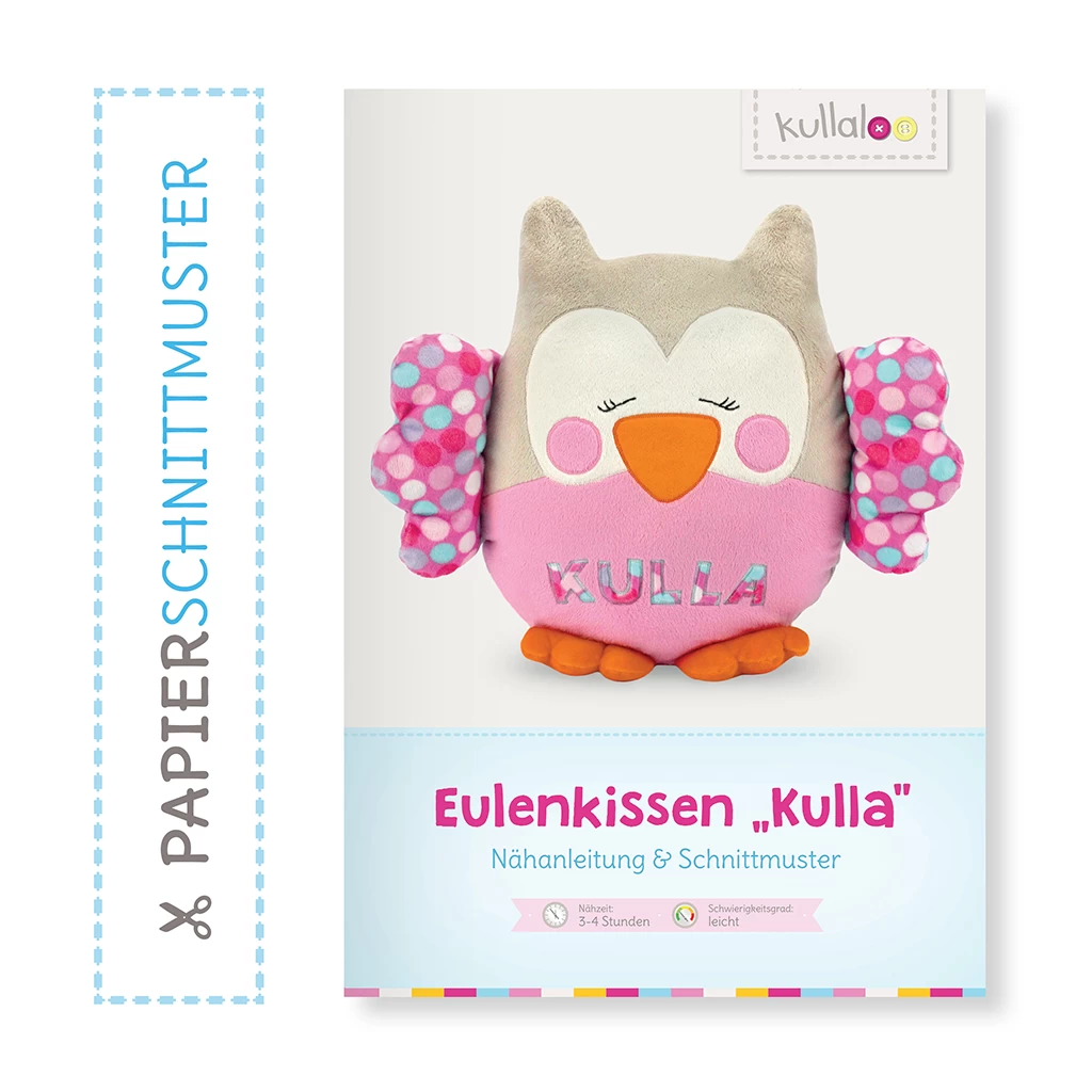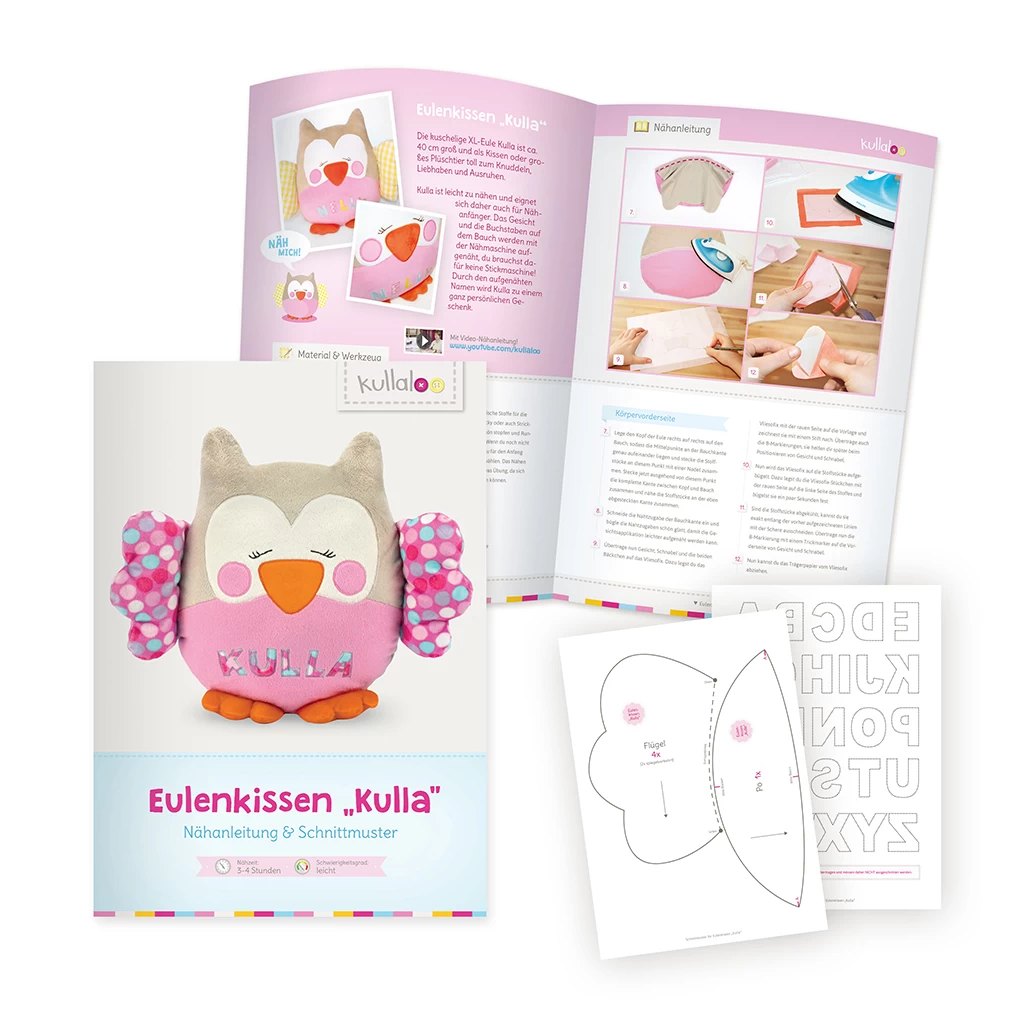 Eulenkissen selber nähen leicht gemacht: Mit unserer Nähanleitung für Eule „KULLA“ als Papierschnittmuster erhältst du eine hochwertige und liebevoll gestaltete Broschüre im A4-Format (farbiges Magazin mit Rückendrahtheftung); so kannst du ohne Ausdrucken von Schnittmuster und Nähanleitung direkt losstarten oder das Schnittmuster sogar an eine nähbegeisterte Freundin verschenken! Die Broschüre enthält die detaillierte Nähanleitung mit vielen Fotos sowie das Schnittmuster in Originalgröße zum Ausschneiden.