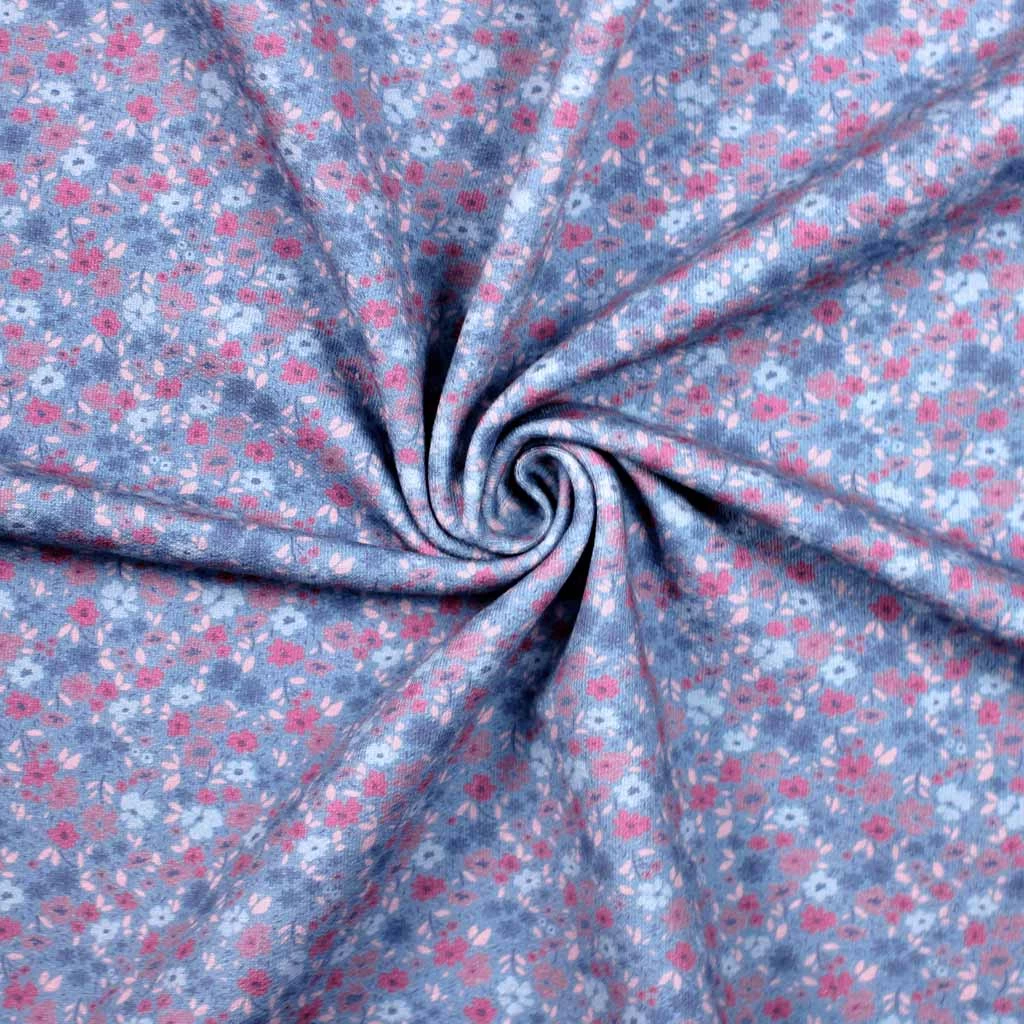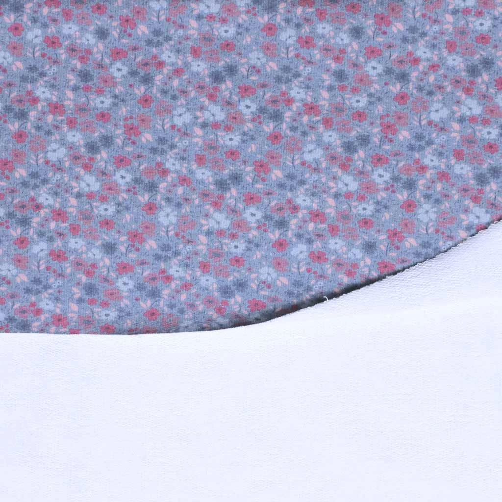 Dieser hübsche French Terry Blumen blau / rosa mit fröhlichem Streublumen-Allover-Print ist Teil unserer allerersten kullaloo-French Terry-Eigenproduktion! Dieser und die vier weiteren kullaloo French Terry-Stoffe der Reihe lassen sich sowohl einzeln als auch in Kombination mit unifarbenen Stoffen zu tollen Klamotten-Kreationen verarbeiten. Die harmonisch abgestimmte Farbzusammenstellung hat genau die richtige Balance zwischen fröhlich-bunt und dezent-ausgewogen.