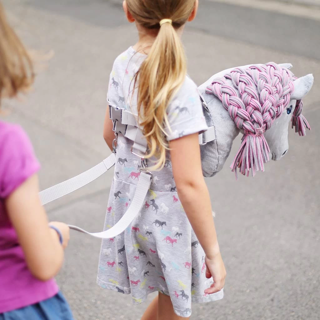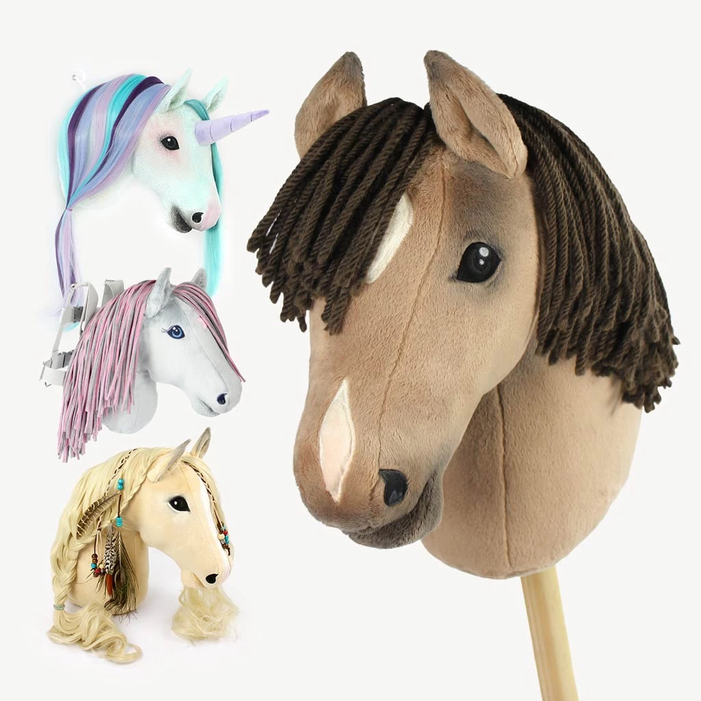 Hobby Horsing – das ist eine Sportart, bei der man Springreiten und Dressur auf einem Steckenpferd nachstellt. Aber ein Hobby Horse ist alles andere als ein eingestaubtes Steckenpferd von Omas Dachboden! Denn die modernen Hobby Horses begeistern Groß und Klein durch ihr realitätsnahes Aussehen. Dieses kommt durch die detailgetreue Form, die im Wind wehende Mähne und die Schattierungen zustande. Unser Hobby Horse Schnittmuster „HOLLY“ kann dabei sogar noch einiges mehr! Es enthält neben der klassischen Steckenpferd-Variante auch Abwandlungsmöglichkeiten für einen Frisierkopf zum Hinstellen, einer Wanddekoration zum Hinhängen oder einem Pferdkopf zum Umschnallen. Außerdem ist eine Vorlage für lange Eselsohren und für die Einhornfans ein Horn zum Aufnähen enthalten.