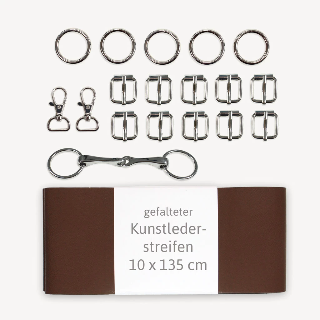 Lieferumfang des Sets zum Hobby Horse Trense selber machen: