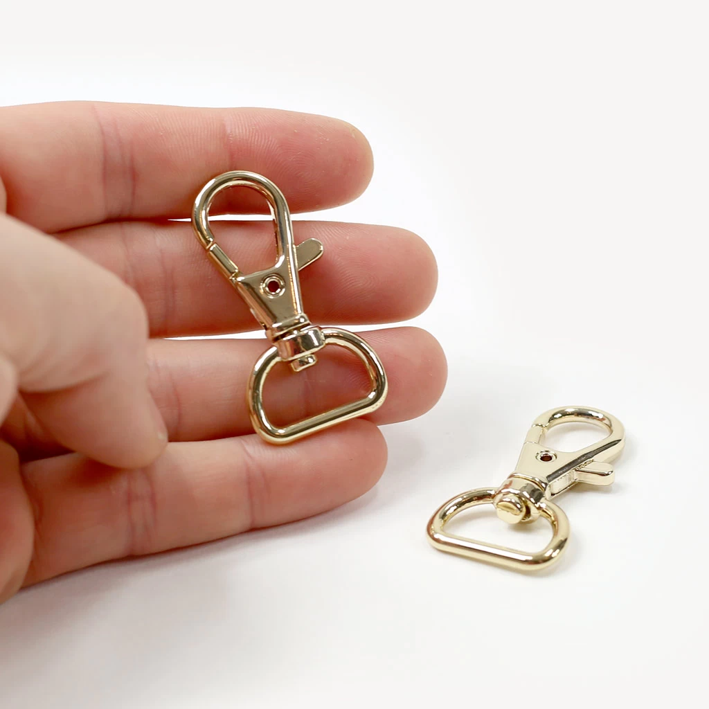 - 2x Karabiner goldfarben mit geradem Auge, Höhe 4,2 cm, Breite des Auges 1,5 cm (aus Zinklegierung, mit nickelfreier Beschichtung)