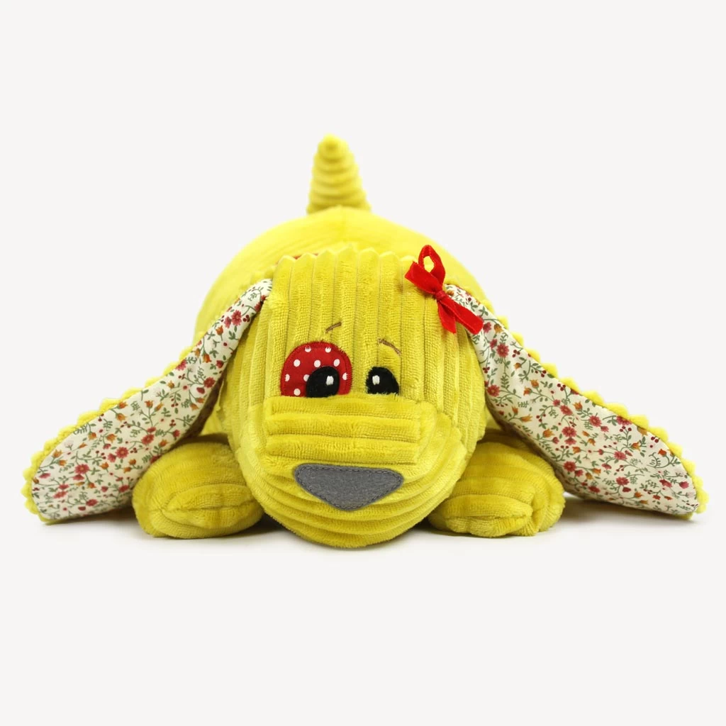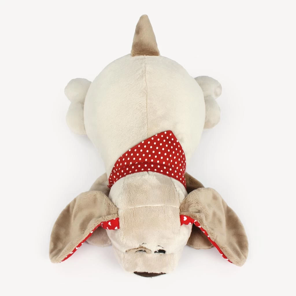 Das Hunde Kuscheltier mit den niedlichen großen Schlappohren ist ca. 40 cm lang und 20 cm hoch. Genau die richtige Größe zum ausgiebigen Schmusen! Wenn du WUFFLs Bäuchlein und seine Beine mit etwas Granulat füllst, bekommt der Kuschelhund ein schönes Schmusegewicht und lustige Schlenkerbeinchen.