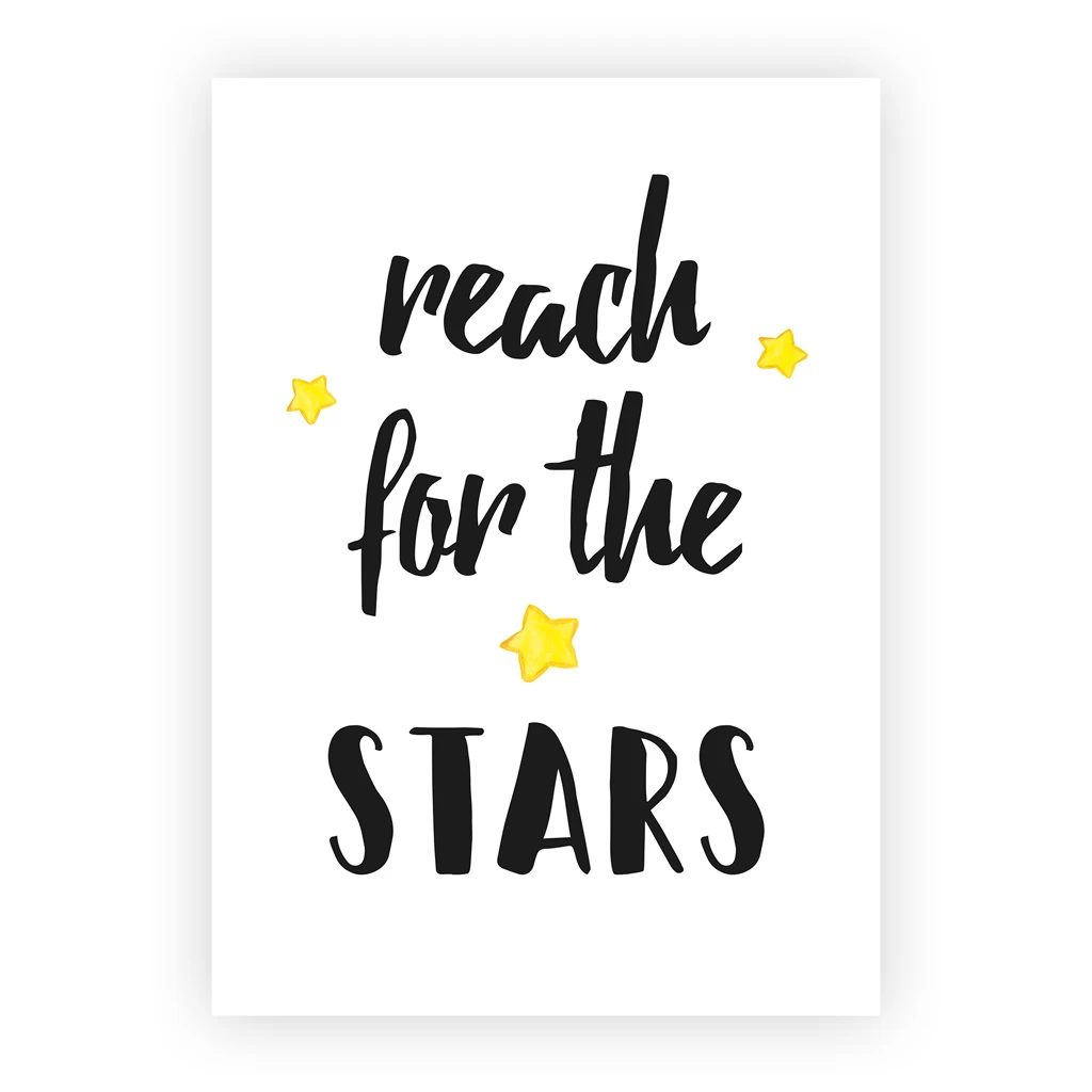 - 1x DIN A4 (21 x 29,7 cm) Kinderzimmerposter / Kunstdruck Spruch „Reach for the stars“ ohne Rahmen