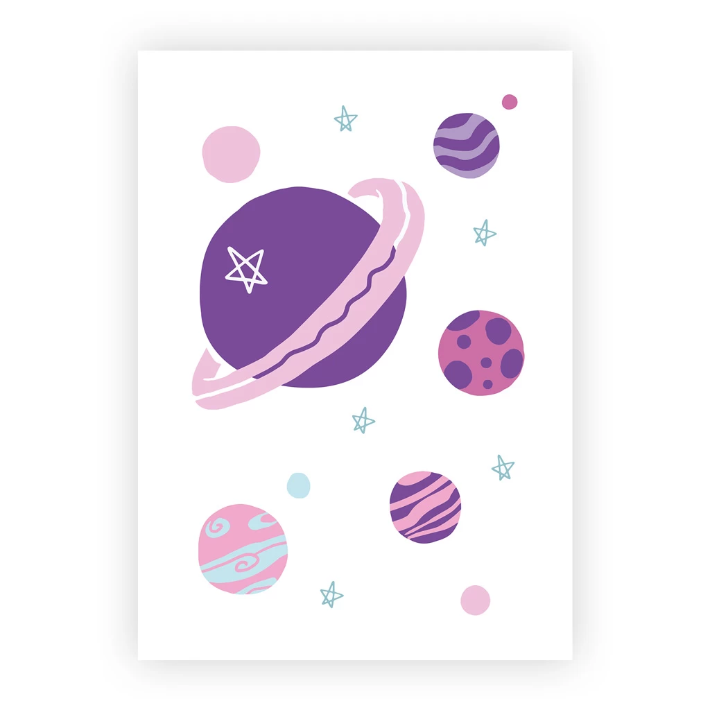 - 1x DIN A4 (21 x 29,7 cm) Kinderzimmerposter / Kunstdruck Illustration „Planeten“ ohne Rahmen
