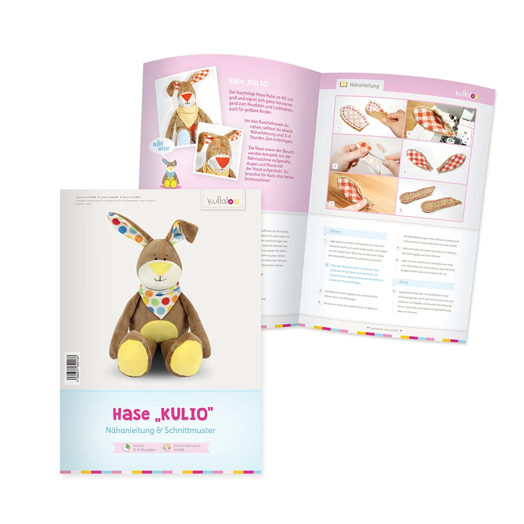Nähanleitung & Schnittmuster für den Hase sind als hochwertige Print-Broschüre ebenfalls im Nähset enthalten!