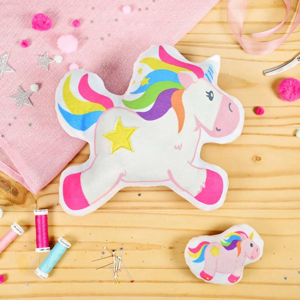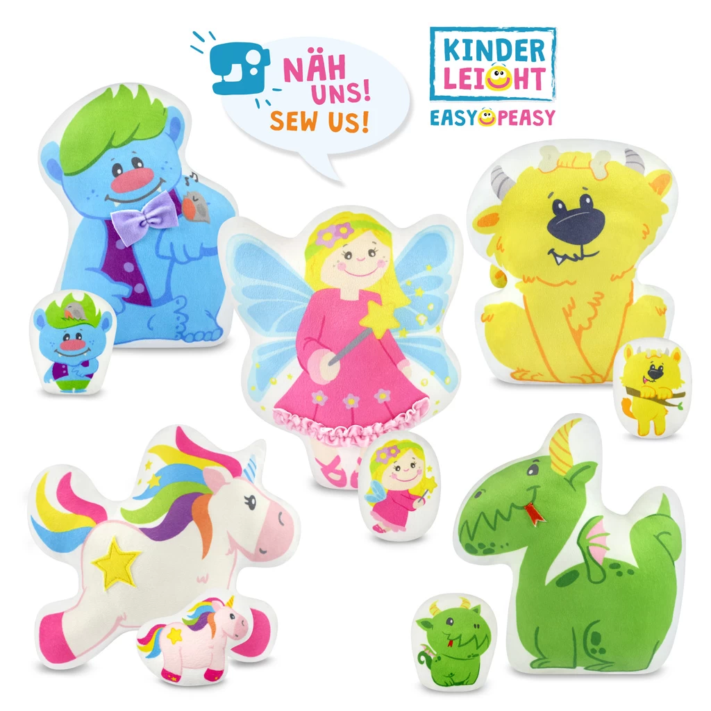 Mit den enthaltenen Schnittteilen in jedem Set kann man dabei eine Kissenfigur von ca. 25 cm Größe UND eine kleine Minifigur von ca. 10 cm nähen. Außerdem enthält jedes Nähprojekt unserer KINDERLEICHT Sets ein kleines Nählern-Thema, bei dem eine bestimmte Nähtechnik erlernt werden kann. Im Falle der Fee wird beispielsweise das Nähen von Rüschen behandelt, beim Einhorn das Applizieren von Stoffstücken.