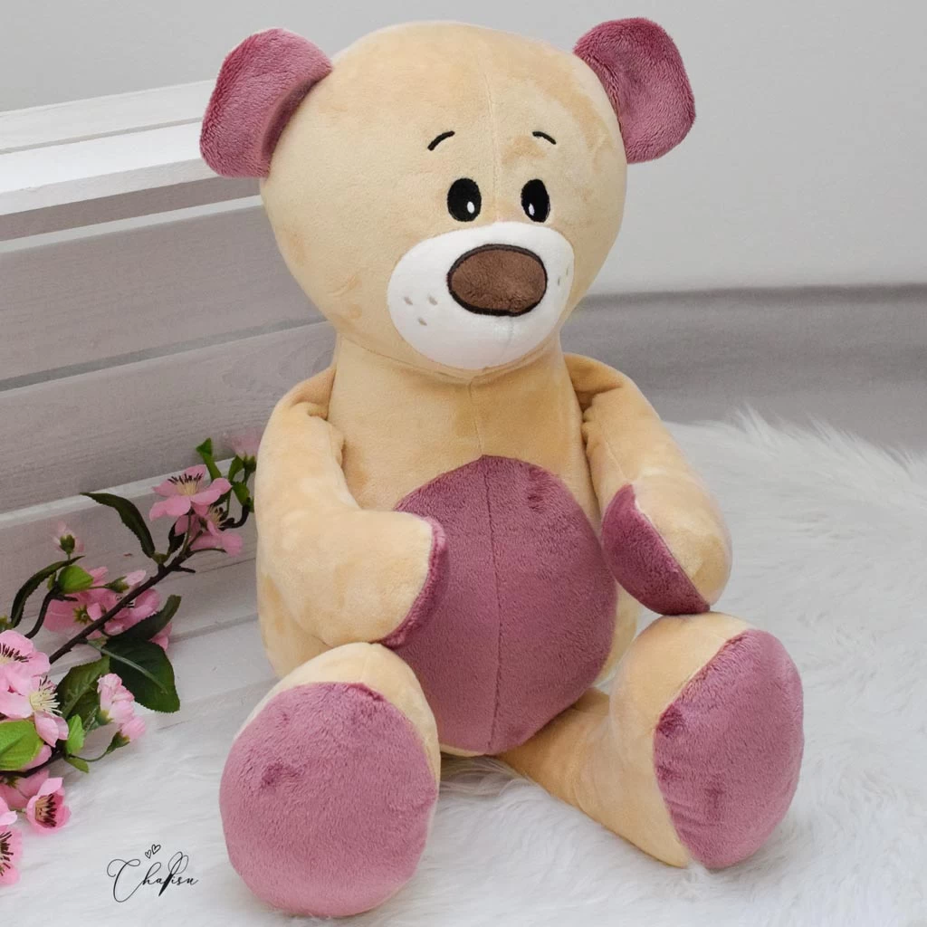 Der Plüsch in camel / beige ist dabei perfekt zum Nähen für Babys und Kinder, denn er ist pflegeleicht (waschbar bei 30°, trocknergeeignet) und gleichzeitig schadstoffgeprüft gemäß der Europäischen Norm für Spielzeug. Nähen mit gutem Gewissen also! Im Vergleich zu klassischer Teddy Plüsch Meterware aus Baumwolle ist Polyester Plüsch Stoff wie unserer außerdem sehr viel weicher und verliert auch nach vielen Wäschen nichts von seiner unvergleichlichen Kuscheligkeit. Die besten Voraussetzungen, damit dein selbstgenähter Kuschelfreund ein langer und treuer Wegbegleiter werden kann!