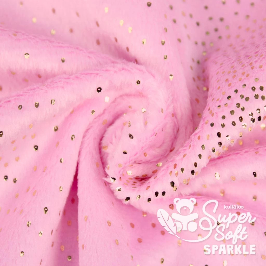 Lange haben wir danach gesucht, nun haben wir ihn endlich gefunden: Also Vorhang auf für unseren neuen traumhaften Glitzerplüsch, den kullaloo SuperSoft SPARKLE! SPARKLE ist genauso unglaublich weich, wie du es von unseren anderen kullaloo Plüschstoffen kennst. Aber er ist mit vielen kleinen goldfarbenen Glitzerpünktchen bedruckt, sodass er jedes selbstgenähte Kuscheltier in ein ganz besonders magisches Wesen verwandeln kann. Der Plüsch Stoff Glitzer rosa passt natürlich farblich in die kullaloo Plüschfamilie und ist damit wunderbar mit unseren anderen Plüschstoffen kombinierbar!