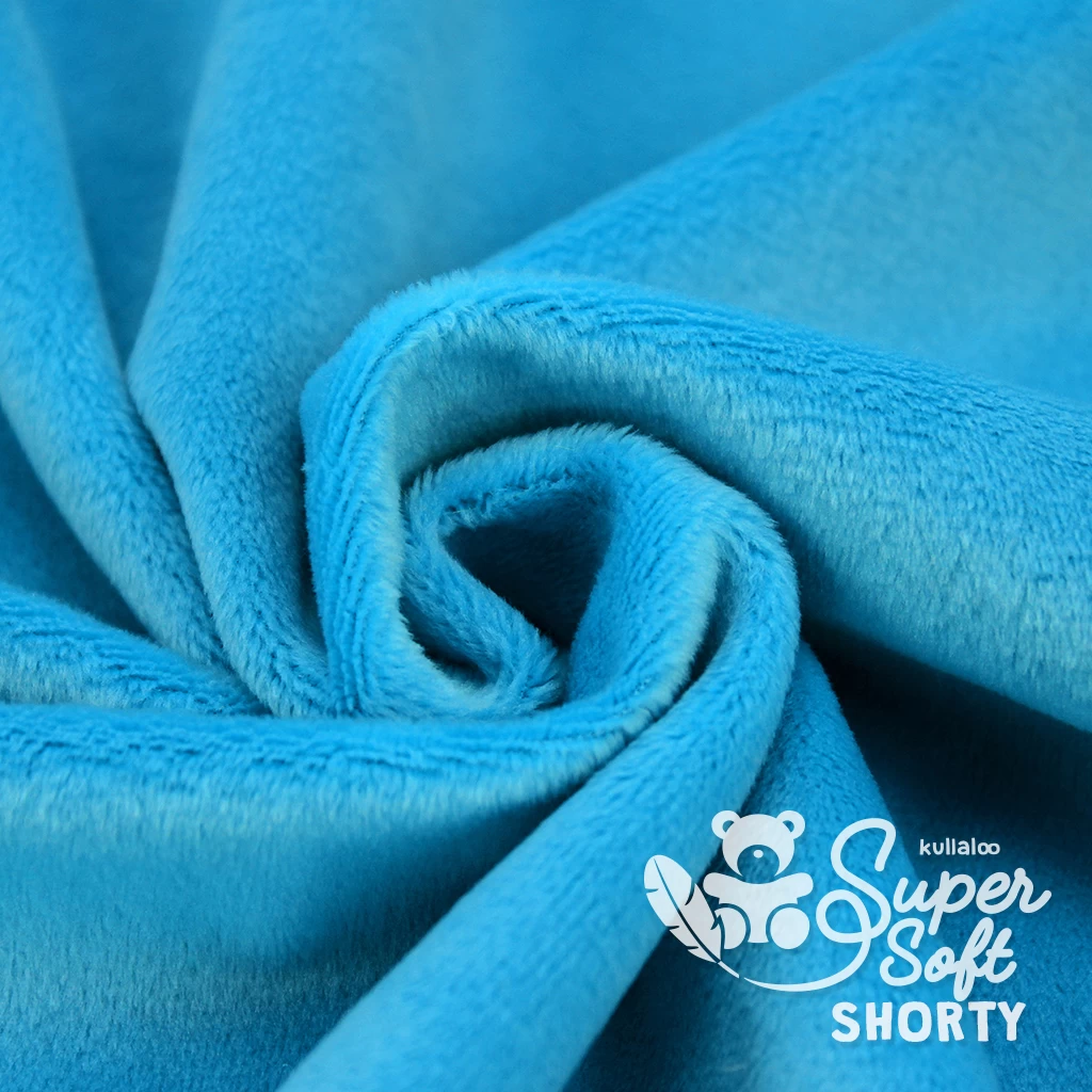 Unser SuperSoft SHORTY Plüschstoff blau ist ein leicht dehnbarer, qualitativ hochwertiger Microfaser-Plüsch / Minky aus dem Hause kullaloo. Egal, ob du den Plüsch zum Kindersachen nähen benötigst oder für Nähprojekte im Bereich Deko- und Wohntextilien, unser Kurzhaarplüsch SHORTY ist das ideale Material! Du kannst mit den vielen fröhlichen und leuchtenden Farben ganz bezaubernde Kuscheltiere nähen, aber auch wundervolle Babydecken, Knistertücher oder andere Baby-Accessoires.