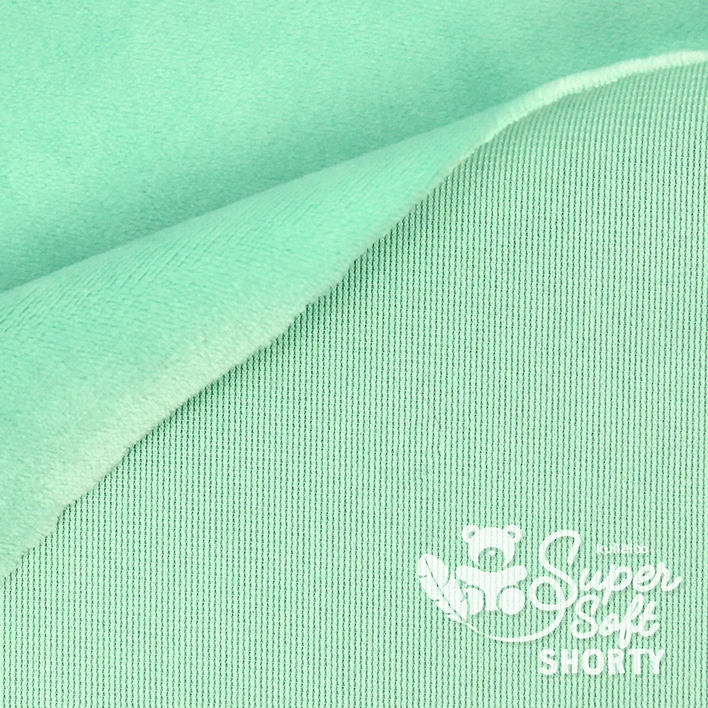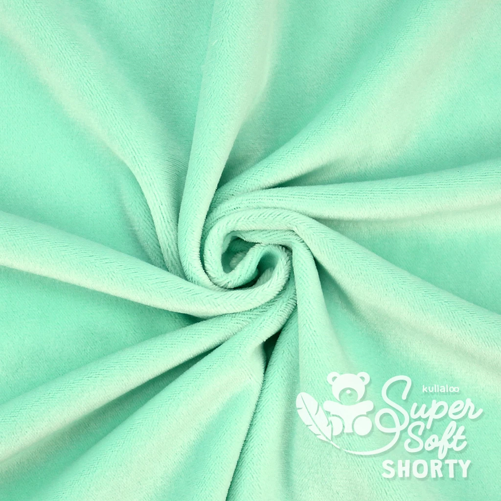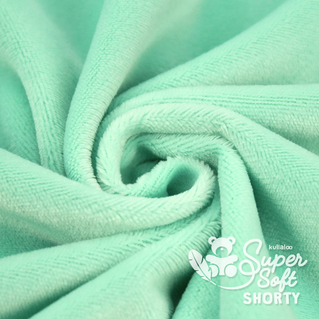 Unser SuperSoft SHORTY Plüschstoff mint ist ein leicht dehnbarer, qualitativ hochwertiger Microfaser-Plüsch / Minky aus dem Hause kullaloo. Egal, ob du den Plüsch zum Kindersachen nähen benötigst oder für Nähprojekte im Bereich Deko- und Wohntextilien, unser Kurzhaarplüsch SHORTY ist das ideale Material! Du kannst mit den vielen fröhlichen und leuchtenden Farben ganz bezaubernde Kuscheltiere nähen, aber auch wundervolle Babydecken, Knistertücher oder andere Baby-Accessoires.