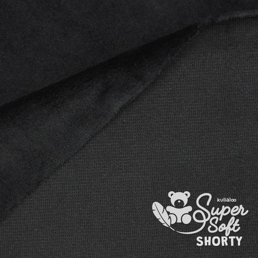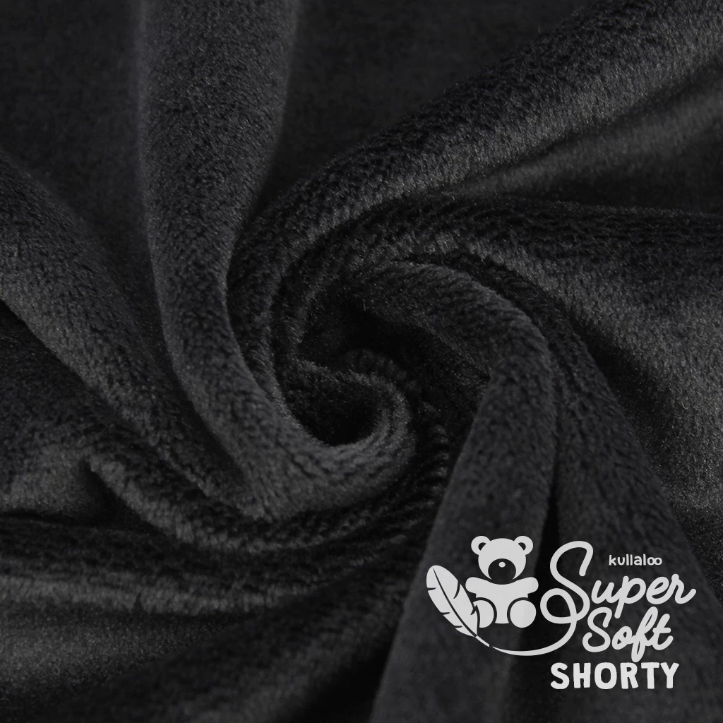 Unser SuperSoft SHORTY Plüschstoff schwarz ist ein leicht dehnbarer, qualitativ hochwertiger Microfaser-Plüsch / Minky aus dem Hause kullaloo. Egal, ob du den Plüsch zum Kindersachen nähen benötigst oder für Nähprojekte im Bereich Deko- und Wohntextilien, unser Kurzhaarplüsch SHORTY ist das ideale Material! Du kannst mit den vielen fröhlichen und leuchtenden Farben ganz bezaubernde Kuscheltiere nähen, aber auch wundervolle Babydecken, Knistertücher oder andere Baby-Accessoires.