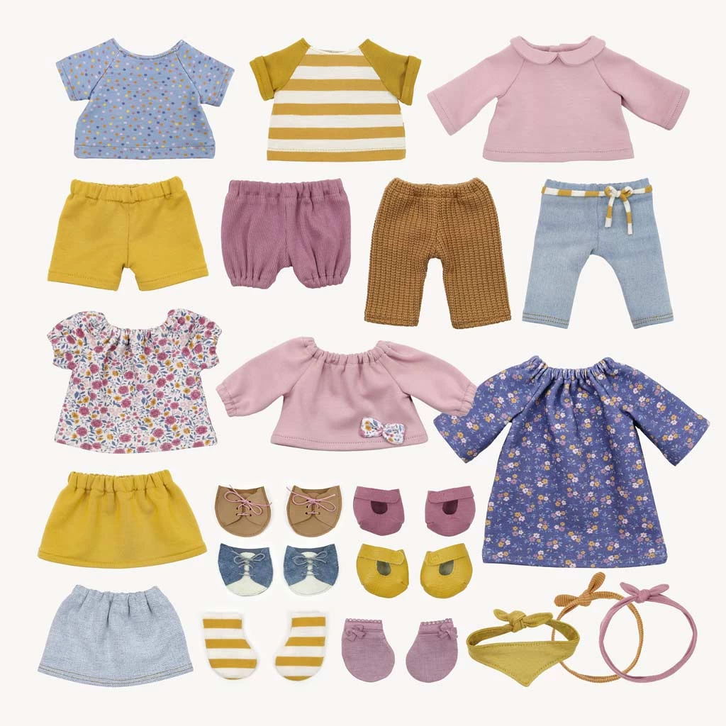 Dress Me Bestie heißt unsere Serie, bei der sich alles ums Anziehen von selbstgenähten Kuschelfreunden dreht! Mit diesem Produkt erhältst du insgesamt 9 Schnittmuster zum Puppenkleidung nähen für dein Dress Me Bestie, egal ob für Elefent EDDY oder Teddybär BETSY. Die Kleidung sollte aber auch anderen ca. 40 cm großen Puppen passen. Mit dabei sind eine super vielseitige Hose, egal ob kurz oder lang, gerafft oder im Slim-Fit-Style. Die passende Tunika kann ebenfalls mit kurzen oder langen Ärmeln genäht und ist in drei verschiedenen Längen erhältich. Etwas cooler ist das Shirt mit Klettverschluss, das ebenfalls mit kurzen oder langen Ärmeln und optional mit einem Bubikragen genäht werden kann. Der einfache Rock lässt sich super kombinieren und die zahlreichen Accessoires von Halstuch und Haarband über verschiedene Söckchen runden jedes Outfit perfekt ab. Unser Favorit sind aber die zwei verschiedenen Schuhe, denn von Schuhen kann man nie genug haben!
