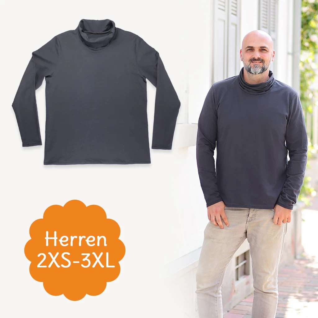 Schnittmuster „RENATE“ zum Rollkragen Pullover Nähen aus der SEWwhat? Schnittmustersammlung byGraziela Special Edition gibt‘s jetzt auch für Männer! „RENATE“ ist ein klassisches Langarmshirt im Rolli-Stil und das perfekte Basic-Teil für’s ganze Jahr.