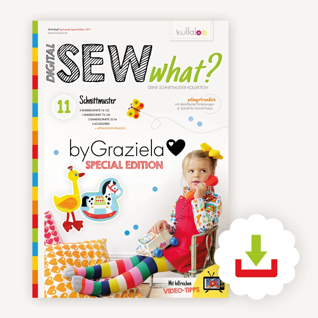 Da ist sie, die allererste Ausgabe unserer kullaloo Schnittmuster-Kollektion „SEWwhat?“, hier als digitale Ausgabe im eBook-Format mit Schnittmustern als Einzel-PDFs zum Ausdrucken (auch als gedrucktes Magazin mit Schnittmusterbögen erhältlich). Die in der SEWwhat? (sprich [souhwat]) enthaltenen Nähanleitungen zu den einzelnen Schnitten haben wir mit gewohnter kullaloo-Liebe zum Detail, mit vielen Fotos zu jedem einzelnen Schritt und hilfreichen Video-Tipps ausgestattet. Damit sind die Nähanleitungen anfängerfreundlich und sehr gut verständlich, so wie ihr es auch von unseren anderen eBooks und unserem Kuschelfreunde-Buch gewohnt seid!