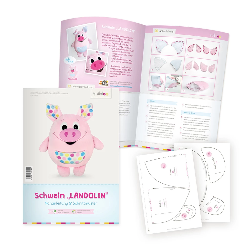 Unsere Schwein Nähanleitung als Papierschnittmuster ist eine hochwertige und liebevoll gestaltete Broschüre im A4-Format (farbiges Magazin mit Rückendrahtheftung). So kannst du ohne Ausdrucken von Schnittmuster und Nähanleitung auf dem heimischen Drucker direkt losstarten oder das Schnittmuster sogar an eine nähbegeisterte Freundin verschenken! Die Broschüre enthält die detaillierte Nähanleitung mit vielen Fotos sowie das Schnittmuster in Originalgröße zum Ausschneiden. Im Gegensatz zum passenden eBook umfasst das Papierschnittmuster nur die Größe M das Schwein (35 cm).