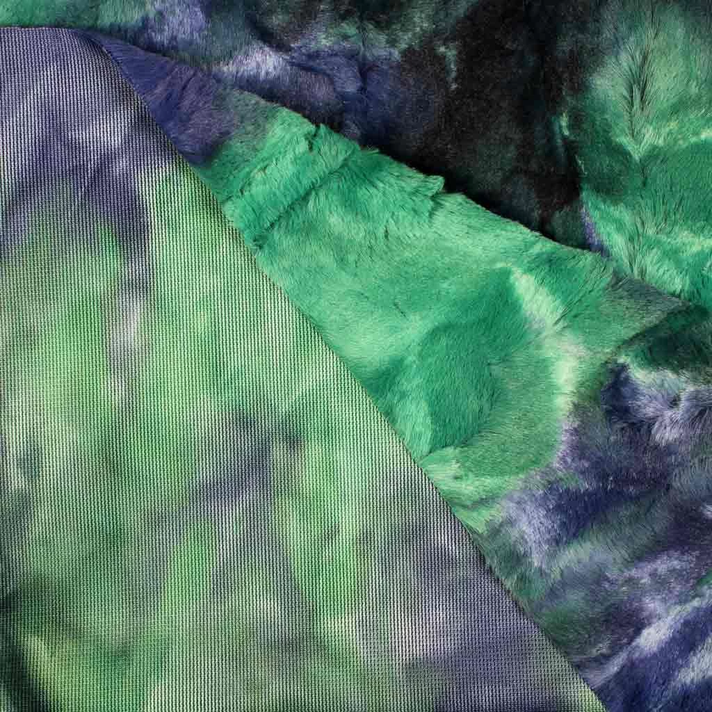 Der Plüsch mit dem Batikmuster hat eine Florlänge von 10 mm und eine natürliche, unregelmäßige Fellstruktur. Damit ist er besonders als Fell für ganz besondere Kuscheltiere geeignet, aber auch für Kuschelkissen und Decken. Der außergewöhnlich weiche Plüsch besitzt eine sehr feine Oberfläche, die zum Kuscheln und Wohlfühlen einlädt. Auf der Rückseite des Plüschs befindet sich Strick.