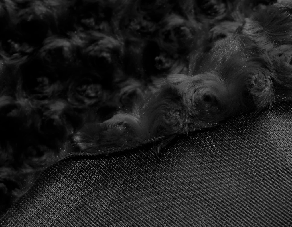 Der Rosenplüsch schwarz ist leicht dehnbar, spielzeugtauglich und eignet sich daher perfekt für Kuscheltiere, Babydecken, Baby-Accessoires, Kissen, Kostüme, Kleidung, etc. Die Härchen aus Microfaser sind 12mm lang und auf der Rückseite des Plüschs befindet sich Strick, sodass er sich problemlos verarbeiten lässt.