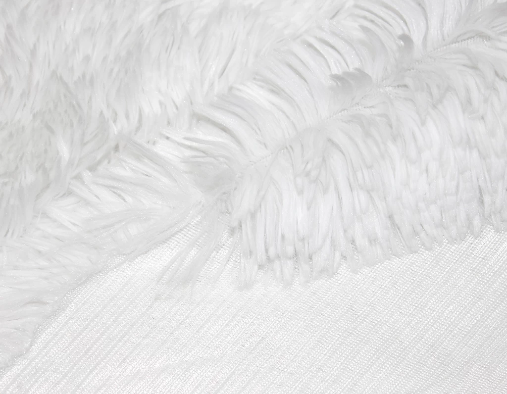Der weiße Microfaser-Plüsch hat eine Florlänge von 30mm und eignet sich perfekt für außergewöhnliche Nähprojekte. Der Langhaarplüsch besitzt eine unheimlich weiche Oberfläche, die zum Kuscheln und Wohlfühlen geradezu einlädt. Auf der Rückseite des Plüschs befindet sich Strick, sodass er sich gut verarbeiten lässt.