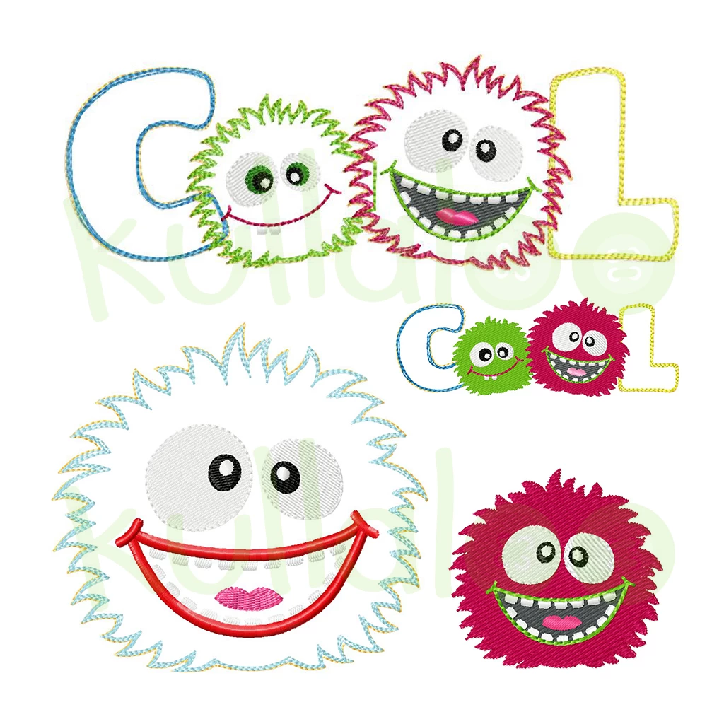 Die freche Stickapplikationen Datei „COOLE KULLER“ ist ein bunter Mix bestehend aus 3 Stickdateien für den 13x18cm-Rahmen. Die coolen Stickdateien kannst du zum Verschönern und Aufpeppen von Kinderkleidung, Taschen, Decken und vielen anderen Accessoires verwenden.