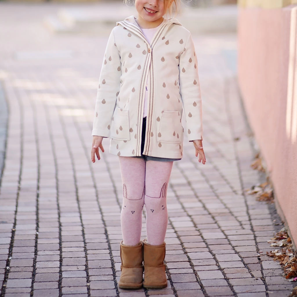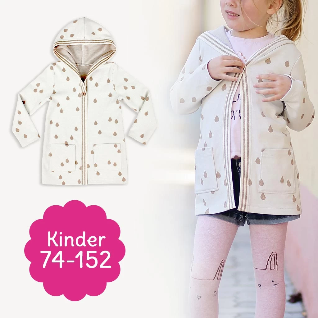 Unser Schnittmuster Cardigan „CHILLY“ ist ein lässiger Kinderschnitt zum Strickjacke nähen. „CHILLY“ reicht bis über den Po und ist, nicht zuletzt auch wegen der gemütlichen Kapuze, eine super Strickjacke zum Reinkuscheln. Zwei aufgesetzte Taschen bieten Platz für Kleinigkeiten oder kalte Hände. Das Cardigan Schnittmuster ist ein wahrer Alleskönner: Ob zu Hause, in Kindergarten oder Schule oder unterwegs: Mit „CHILLY“ sind die Kleinen immer gut angezogen!