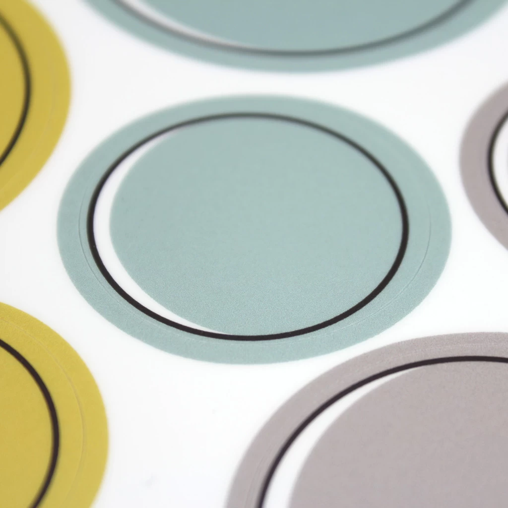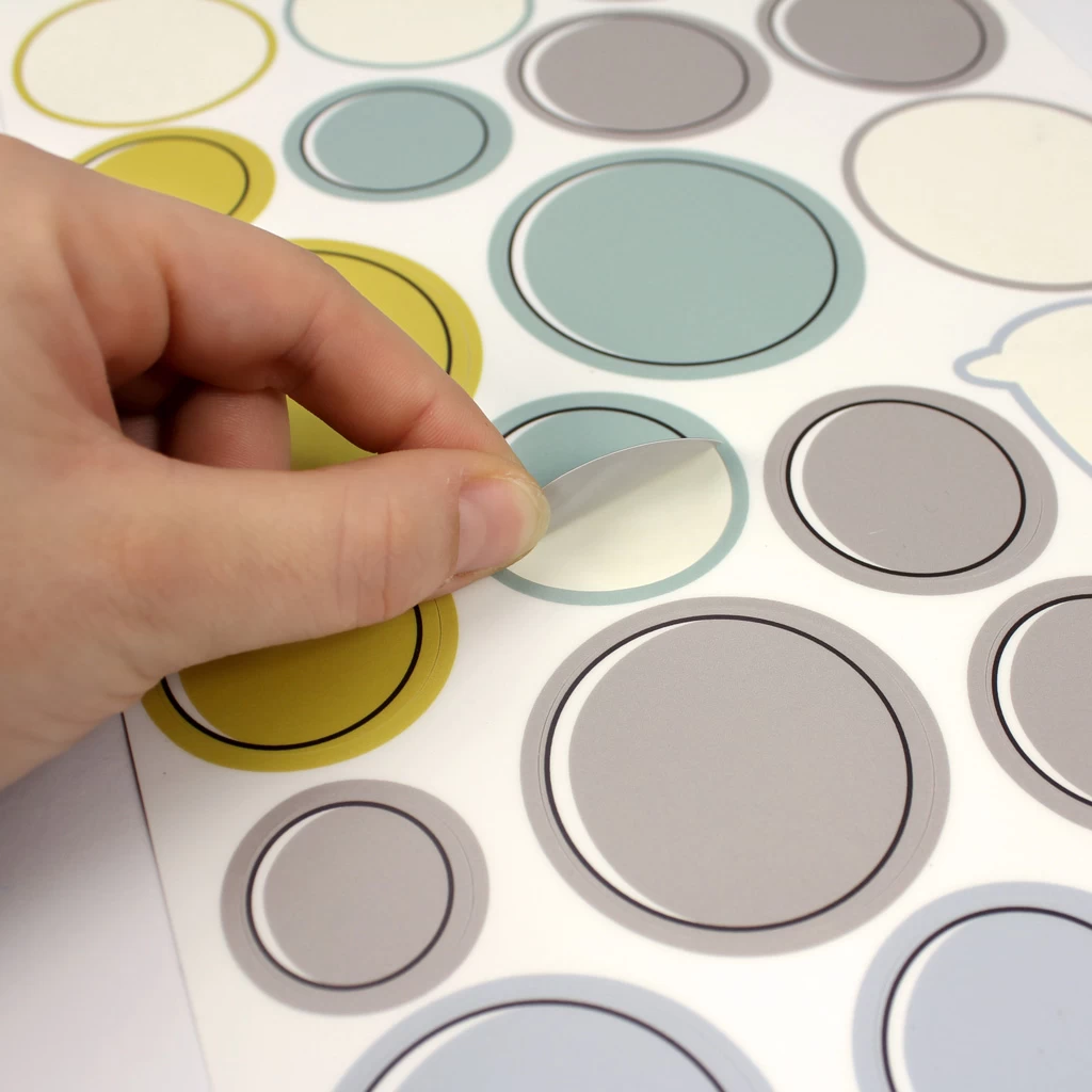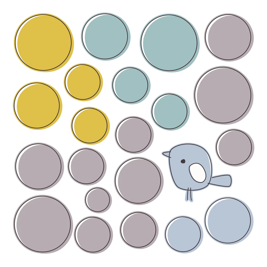 - 1x DIN A4 (21 x 29,7 cm) Wandtattoobogen mit 21 Stickern (Kreise und Vögelchen)