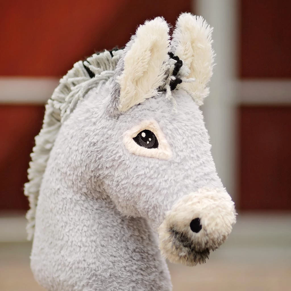 Die hier gezeigte Farbe eignet sich perfekt für Apfelschimmel, bei denen du unseren SHORTY silber oder SNUGLY silber mit der grauen Wolle kombinieren kannst. Diese vor allem im Dressur- und Springsport vorkommende Fellfarbe ist auf unzählig viele Rassen verteilt, wie beispielsweise Connemara, Holsteiner, Hannoveraner, Westfahle, uvm! Die „Dapples“ kannst du dabei wie im eBook beschrieben mit Stoffmalfarbe auftragen. Alternativ kannst du mit der grauen Wolle aber auch super süße Hobby Horse Esel herstellen. Natürlich bist du frei, auch deine ganz eigenen Woll-Plüsch-Kombinationen zu erstellen. Ein Wollknäuel reicht dabei je nach Mähnenlänge für mindestens ein Hobby Horse.